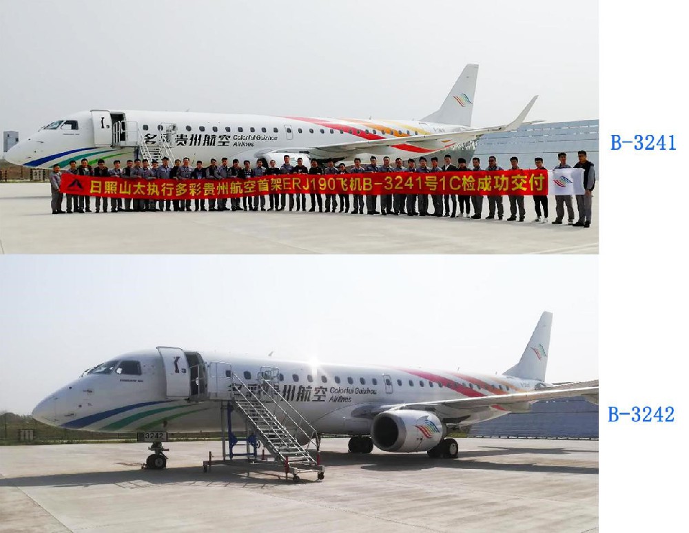 2019年6月4日上午10时,B-3242飞机滑出日照山太机场安检道口,标志着日照山太执行多彩贵州航空的第二架ERJ190飞机顺利出厂。截止到目前为止,两架飞机运行良好。 |